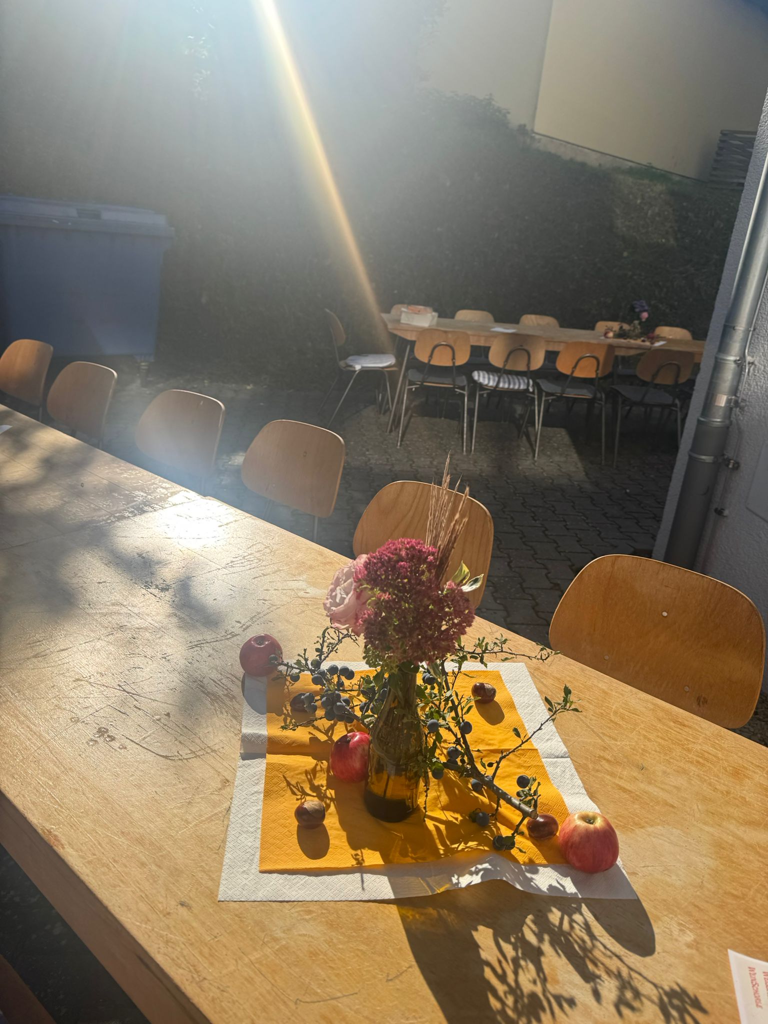 Ab 14 Uhr konnten sich unsere Gäste süße Blootze mit Zwetschgen oder Äpfel oder herzhafte Blootze mit Zwiebeln und Speck schmecken lassen. Dazu noch einen frischen Federweißer oder Kaffee mit Holzbackofenduft und die sonnige Feiertagsstimmung hat perfekter nicht sein können. Schnell war der Platz gefüllt mit Besuchern aus nah und fern, sodass wir sehr gerne noch weitere Stühle und Tische aufbauten.